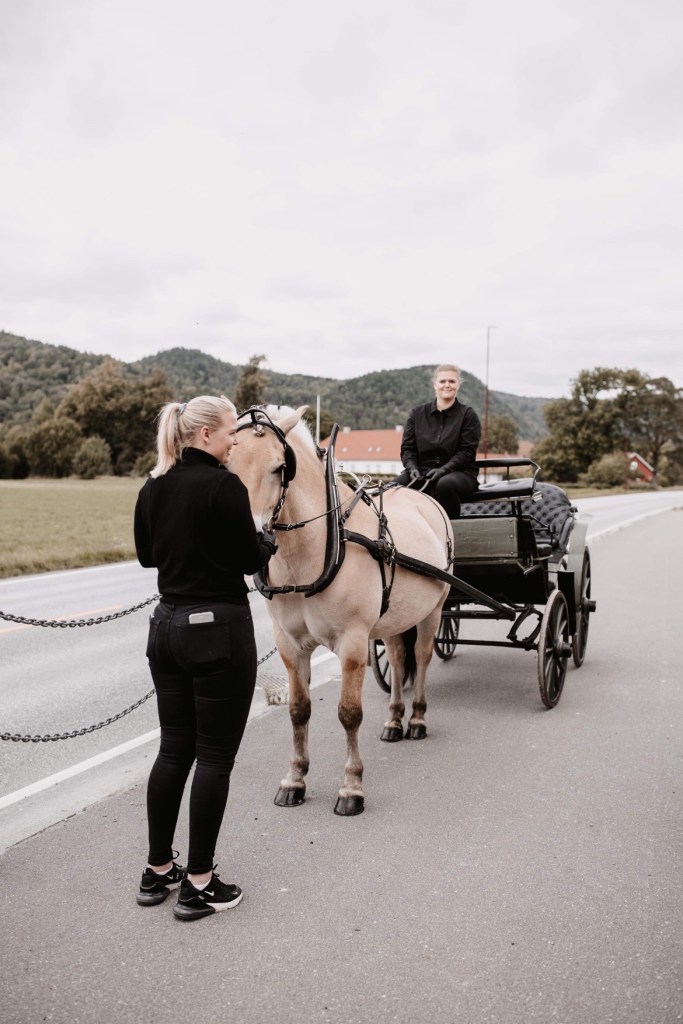 Vi tilbyr selskapskjøring, bryllupskjøring og andre oppdrag med hest.